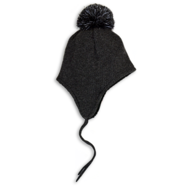 Tiny and shiny. That's the message sent out by this super warm winter hat with the reflective pom-pom on top. Soft ties secure the hat and ear flaps in place.