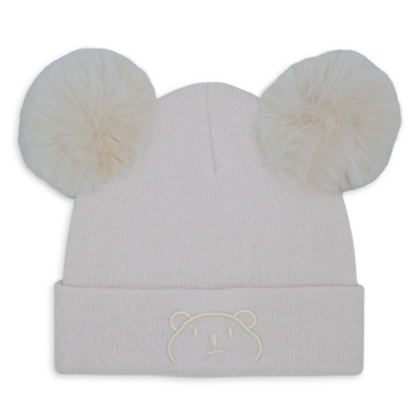 Feel a cool wintery vibe in this warm bear embroidered winter hat! This infant's fold up brim winter hat will have you feeling outstanding, especially when you're out standing in the snow with pom-poms topping things off.