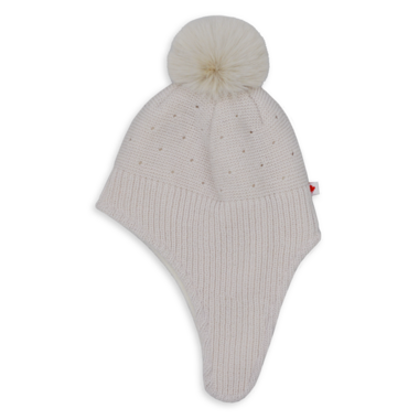 Keep your Little Bo Peep's head and ears protected from the cold in this beautiful baby fleece-lined knit hat. Featuring a playful faux-fur pom-pom, it stays put thanks to the hook and loop closure chin strap.