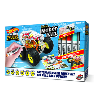Build and customize your own Monster Truck! Colour and sticker your monster truck and then get ready to roll. Pull back your monster truck and then watch it propel forward!