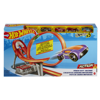 - Pulse-pounding action with motorized loop and awesome jump and FIVE Hot Wheels racers for competing and pushing limits.
