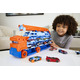 The Hot Wheels City Speed Drop Transportٙ Hauler transforms from a cool and functional car-carrying trailer into a spectacular track with a 2-foot-tall gravity drop for extreme transport and excitement. The hauler can hold more than 20 Hot Wheels vehicles and has big, rolling wheels to make it part of the fun itself. Unlock the rear hitch and transform the hauler into a track set with an epic 2-foot-tall drop.
