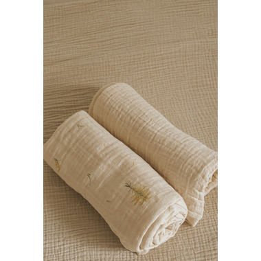 This 2-pack of 100% certified organic cotton muslin blankets meets the strict standards of the Global Organic Textile Standard (GOTS) and the Global Recycled Standard (GRS). Made from high-quality organic cotton muslin, these blankets feature a double layer of muslin, making them both durable and soothing essential companions to take everywhere! Lightweight & Breathable: Crafted from cotton muslin, known for its breathability and exceptional softness, these blankets ensure a cozy and comfortable sleep. The organic muslin is also hypoallergenic.