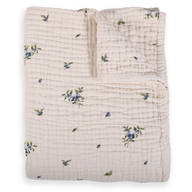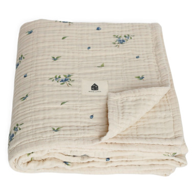 House of Elia Large Organic Cotton Muslin 4 Layer Blanket Blueberry