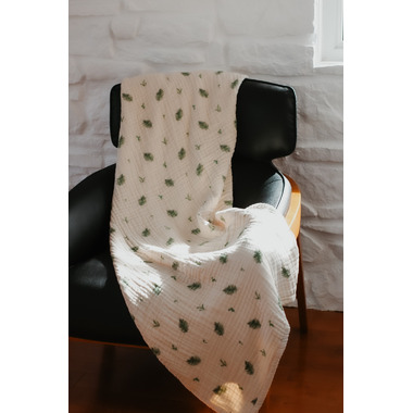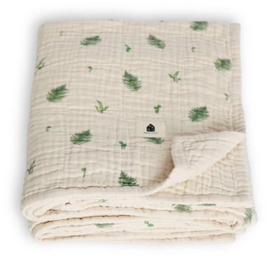 House of Elia Large Organic Cotton Muslin 4 Layer Blanket Fern