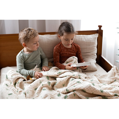 This blanket is made from 100% certified organic cotton muslin, meeting the strict standards of the Global Organic Textile Standard (GOTS) and the Global Recycled Standard (GRS). Crafted from high-quality organic cotton muslin, this 4-layer blanket is designed for crib use but is also perfect for everyday adventures whether in the stroller, car seat, or for tummy time on the floor. Itגs an essential companion for your little one! Lightweight & Breathable: Made from cotton muslin, known for its breathability and exceptional softness, these blankets ensure a cozy and comfortable sleep. The organic muslin is also hypoallergenic.