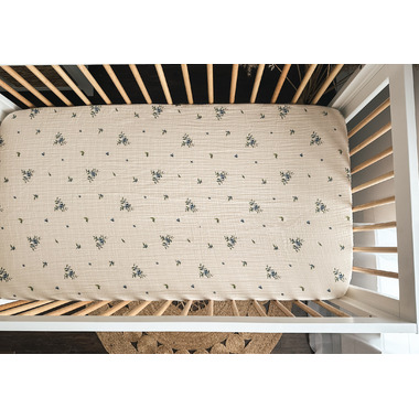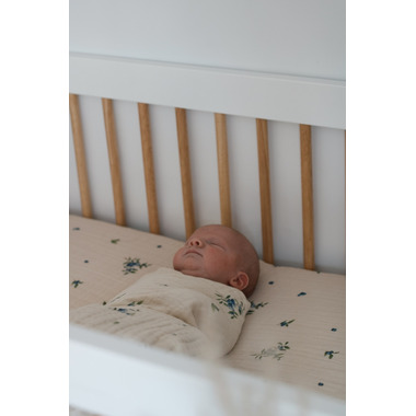 The fitted crib sheet is made from 100% certified organic cotton muslin, meeting the strict standards of the Global Organic Textile Standard (GOTS) and the Global Recycled Standard (GRS). Crafted from high-quality organic cotton muslin, this fitted sheet is designed to fit crib mattresses and features a wide elastic band to accommodate various mattress thicknesses while staying securely in place. Lightweight & Breathable: Made from cotton muslin, known for its breathability and exceptional softness, the fitted sheet ensures a cozy and comfortable night's sleep. The organic muslin is also hypoallergenic.