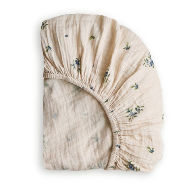 House of Elia Organic Cotton Muslin Fitted Sheets Blueberry