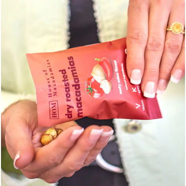 Macadamias dusted with tangy, sweet and salty spices, flavors of tomato and cayenne pepper that perfectly complement the nut, while giving it a savory edge. A nutritional, healthy snack option, that doubles as a delicious treat, enough to satisfy your cravings.
