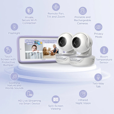 The Latest Innovation in Baby Monitoring. At Hubble Connected, Hubble is constantly inspiring and innovating to optimize your home and deliver the latest and best innovation for your family. That's why they're introducing Nursery Pal Dual Vision, the smart HD baby monitor which features dual lenses for standard and wide-angle view from the same device. Conveniently adjust either lens with remote pan, tilt and zoom functions to secure the perfect view. Monitor your child in their crib while using the wide-angle lens to monitor the rest of the nursery. With dual lenses, your baby monitor just doubled in efficiency. With the complimentary parent unit, it's easier than ever to keep an eye on your little one.