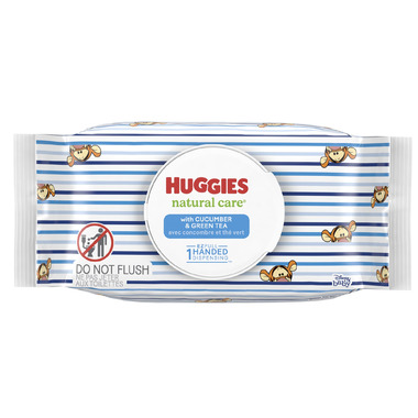 Huggies Natural Care Refreshing Baby Wipes have reliably offered plant-based ingredients since 1990, are made with 99% purified water and are infused with cucumber and green tea for a more refreshing clean. These disposable baby wipes are hypoallergenic, dermatologist-tested and pH-balanced to help maintain healthy skin. Natural Care Refreshing scented baby wipes contain no harsh ingredients while offering a refreshing, clean scent for your baby. They're also free of lotions, alcohol, parabens and elemental chlorine and do not contain phenoxyethanol or MIT. In addition, our unique base sheet absorbs, locks-in and retains the mess to help ensure your baby's skin is clean and healthy. Coming in adorable Tigger-themed packaging, the flip-top design and EZ Pull 1-Handed Dispensing makes it easy for you grab wipes without wasting sheets!
