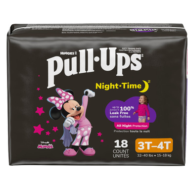 Make potty training a routine with Pull-Ups Night-Time Training Pants! The most absorbent training pant with extra nighttime protection. Re-fastenable, easy-open sides allow you to keep clothing on your toddler for quick changes on-the-go or in the middle of the night. Pull-Ups Night-Time training pants provide all-around coverage with soft, stretchy sides that fit like underwear and slide up & down to promote Big Kid independence. Pull-Ups disposable training pants also feature adjustable sides to customize your child's waistband and easily check for messes. When your child is ready to begin her potty training journey, the Pull-Ups brand can help.