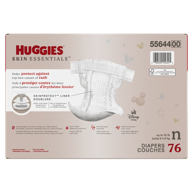 Your babys skin health is essential to their overall health and comfort, and Huggies Skin Essentials Baby Diapers want to help you make it a priority. Made with a SkinProtect Liner that helps lock away moisture and runny mess, Skin Essentials infant diapers help protect against the top two causes of rash.* Clinically tested safe for sensitive skin, Huggies Skin Essential newborn diapers are hypoallergenic and free of fragrance.