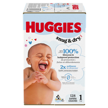 The Snug & Dry diapers are designed with 2x softness: CloudSoft absorbent layers and waistband and a curved and stretchy fit. Softer than the leading premium diaper, more parents choose Huggies Snug & Dry infant diapers as softer. With Snug & Dry baby diapers, you can bring up to 100% leak and blowout protection to your diapering routine. Made with the original Leak Lock blowout blocker, Snug & Dry baby diapers help provide up to 100% leak proof and blowout protection. Additionally, these diapers are designed with a curved and stretchy fit and outstanding leakage protection.