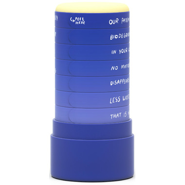 Directions: Pull off the lid and put us in your pits. As the deodorant stick wears down, husk the biodegradable P.E.E.L Tech tubing one piece at a time to get back to the good stuff. When finished, toss the empty canister in the trash or your compost without worry. From beginning to end, the entire thing is biodegradable.