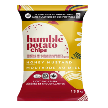 Organic Potatoes, Sunflower Oil, Organic Cane Sugar, Sea Salt, Brown Sugar, Organic Honey Powder (Organic Rice Maltodextrin, Organic Honey), Mustard Powder [Mustard (Organic Vinegar, Mustard Seed, Salt), Rice Maltodextrin], Vinegar Powder (Non-GMO Corn Maltodextrin, White Distilled Vinegar), Dijon Mustard Powder [Dijon Mustard (Mustard Seed, Organic Vinegar, Salt), Non-GMO Corn Maltodextrin], Organic Tapioca Syrup Solids, Onion Powder, Spice, Yeast Extract, Citric Acid (For Flavour), Malic Acid, Natural Flavor, Extractives of Turmeric.