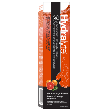 effervescent tablets dissolve to make a hypotonic electrolyte solution. Hydralyte is clinically formulated to contain the correct balance of glucose and electrolytes for the prevention and relief of dehydration. All of these hydrating electrolyte drinks are based on the world Health organization criteria For effective Rehydration. Hydralyte works by replacing fluid and electrolytes lost due to vomiting, diarrhea, fever and heavy sweating. Dehydration can be the result of sickness such as colds or fever, heat exhaustion from sun and heat exposure, or physical exertion during vigorous exercise. The symptoms of dehydration can include dizziness, nausea, a dry mouth or extreme thirst, confusion, and headaches including migraines. Hydralyte helps you manage dehydration symptoms, and is great to keep in your gym bag or travel carry-on for wherever your adventures take you. Directions: Just drop 2 electrolyte tablets into 7 fluid ounces of water to create a clinical hydration solution. |