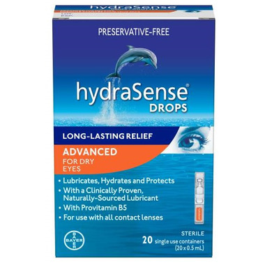 hydraSense Advanced for Dry Eyes provides effective, long-lasting relief for your irritated eyes. It contains Provitamin B5 and the lubricant sodium hyaluronate – clinically proven to hydrate, lubricate and protect your eyes.