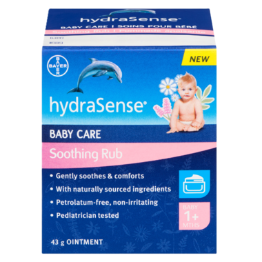 hydraSense Baby Care Soothing Rub is non-medicated, drug-free, and petrolatum-free. Made with a soothing combination of lavender, chamomile and eucalyptus, this gentle chest rub helps to soothe, comfort and calm your baby. Non-irritating formula for the delicate skin of your baby, free from petrolatum, menthol, parabens, phthalates, and hydrogenated oils. hydraSense Baby Soothing rub is pediatrician tested, and suitable for babies 1 month and older, and gentle enough to use every day as part of your bedtime routine. Use the rub to gently massage your baby's chest, neck and back to soothe, calm, and comfort as needed.