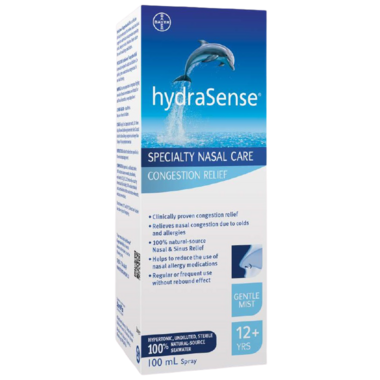 hydraSense Congestion Relief is a natural-source and clinically-proven nasal spray that relieves nasal and sinus congestion caused by colds and allergies and helps reduce the use of nasal allergy medications. It can be used regularly or frequently without rebound effects. hydraSense Congestion Relief is made with 100% natural sourced undiluted seawater.
