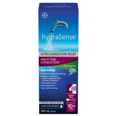 Directions: For children over 10 years of age and adults. Apply 1 spray of hydrasense Ultra Congestion Relief in each nostril by depressing the nozzle for 1 second, up to 3 times daily, followed by blowing of the nose for desired relief.