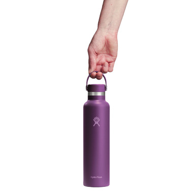 Stainless steel and cupholder compatible, the reusable, refillable 24 oz Hydro Flask Standard Mouth insulated water bottle keeps cold drinks cold for 24 hours, hot drinks hot for up to 12 hours, and holds enough hydration for hours of fun.