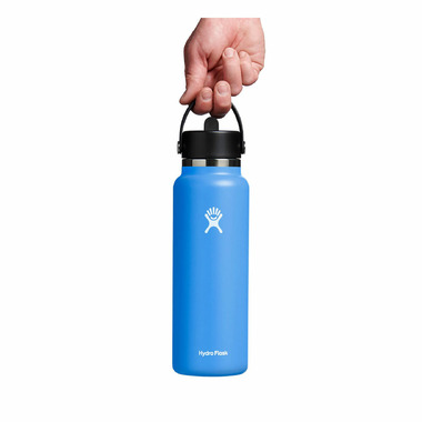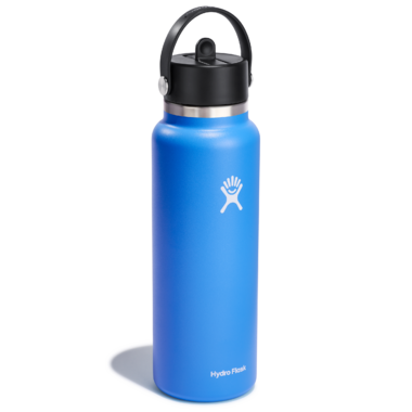 A 40 oz Wide Mouth water bottle with the leakproof Flex Straw Cap easy to fill, easy to drink. Open it up, add your ice, and flip to sip. The insulated stainless steel keeps it cold for up to 24 hours.