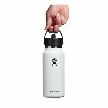A 32 oz Wide Mouth water bottle with a leakproof Flex Straw Cap—easy