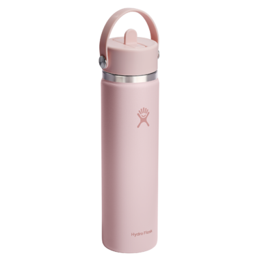 A 24 oz Wide Mouth water bottle with this leakproof Flex Straw Cap easy to fill, easy to drink. Open it up, add your ice, and flip to sip. The insulated stainless steel keeps it cold for up to 24 hours.