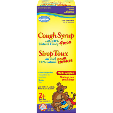 Hyland’s Cough Syrup with 100% Natural Honey 4 Kids is a safe, effective and natural solution to ease your child’s cough. Hyland's powerful homeopathic formula is in a 100% natural honey base. Not only is honey traditionally used to help relieve cough symptoms, kids love the sweet natural flavor. Hyland’s Cough Syrup with 100% Natural Honey offers soothing relief for many different kinds of cough and chest congestion.