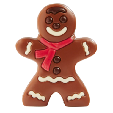 A playful 10cm milk chocolate gingerbread man individually wrapped in a cello bag. Great for a small gift.