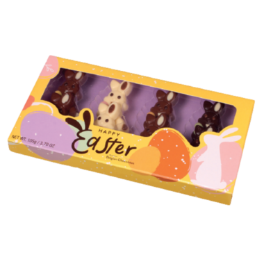 Classic Easter magic captured in premium, Belgian chocolate form. These boxed chocolate bunnies represent the timeless tradition of Easter.