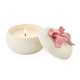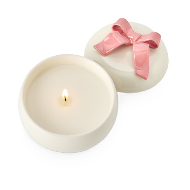 Coconut Milk Mango 6.7oz Bow Lidded Ceramic Candle. An ode to innocence, with all things sweet and playful. Bows, baubles, repeat.Milky coconut + freshly-sliced