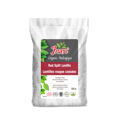 Inari Organic Red Split Lentils are very high in fibre, a source of potassium and iron and free of sodium.