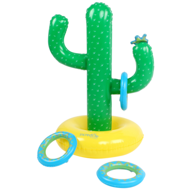 Get outside and play! Catch as many rings as you can on this inflatable cactus ring toss game. Play in the pool or on the grass. The player to catch the most rings wins! Fun for all ages! 3 colourful inflatable rings included. Age 6+
