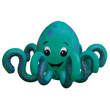 For tremendous fun for children of all ages, enjoy your time in the back yard or on the lawn with this comically large inflatable teal Octopus Sprinkler. A water fillable pouch is built in for stability on the bottom of the inflatable toy. Water sprays out the spout on the inflatable octopus legs once you have attached a garden hose to it.