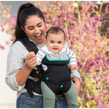 The Infantino Flip 4-in-1 baby carrier's unique, convertible seat makes this the ideal carrier for infancy through toddler years. Use the narrow seat position and padded head support to comfortably hold small infants. Switch to the wide position to continue to provide an ergonomic seat while your child grows.