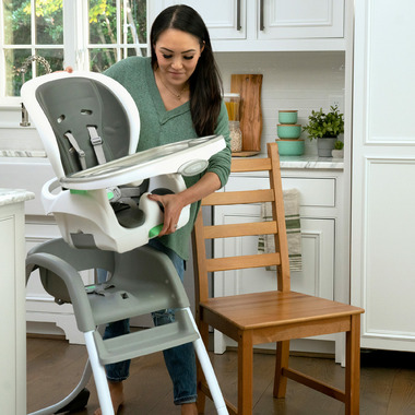 Kids grow up fast and the Ingenuity Full Course SmartClean 6-in-1 High Chair Slate grows with them. Every inch was designed to help you conquer mealtime as it advances from puree splatters to picky eaters. This convertible high chair easily transitions from first foods chair to a traditional high chair to a chair top booster to a dining chair and toddler seat. When used as a booster and toddler chair, it can seat two children at the same time.