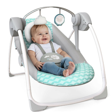 For whatever soothing motion your little one needs, the Ity by Ingenuity Swingity Swing Easy-Fold Portable Swing is just your baby’s speed. With TrueSpeed Technology, 6 different speed options allow you to select the most calming pace. Babies can be soothed in this comfy seat with 2 reclining positions and a removable headrest for newborns. Easily move between rooms with a take-along handle and easy-fold design. Cleanup is breeze with a washable seat pad. An adjustable 5-point harness keeps baby secure from birth to 9 months. The Swingity Swing gives your little one a comforting, compact spot so you can both relax.