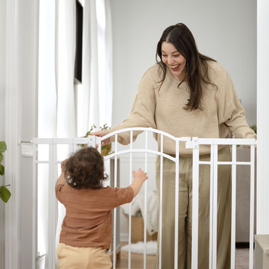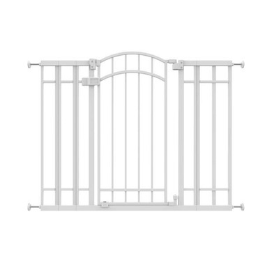 Keep your loved ones safe & secure in style with the Ingenuity Doorway 48W Series Pet and Baby Gate. Measuring 36" tall (including a decorative arch), this white metal safety gate conveniently helps contain children and pets while complementing your home decor.