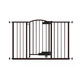 This hands-free gate can be easily pressure mounted for secure use in doorways and between rooms, or hardware mounted for additional peace of mind with the included hardware kit (not made for stair use). Quickly adjust the width with 3 included extensions designed to work for openings from 27.5ٔ wide to 52 wide. Ideal for containing kids and pets, with a door that swings both ways for added convenience. The modern espresso metal finish features a durable steel design and decorative arched doorway to safeguard your home in style. Ingenuity is leading meaningful innovation in baby/pet gates to make parents lives easier. Swing door 17.5 wide.