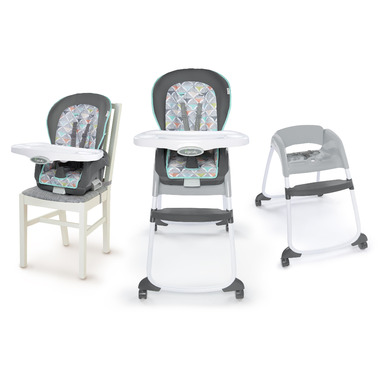 As every parent knows, kids grow up fast. The Ingenuity Trio 3-in-1 High Chair easily adjusts from full-size high chair to booster seat to toddler chair. The convertible high chair wipes clean instantly and the removable tray is dishwasher safe, so you can slow down the clock by spending less time on kitchen cleanup and more time with your family. The dishwasher-safe EasyClean tray also features four locking positions to grow with your baby. And as your family expands, it can too. When used as a booster and toddler chair, it can seat two children at the same time. The sleek metal frame and neutral colors of this modern high chair are designed to complement the décor of any home.