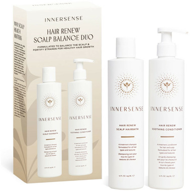 Improve scalp and hair health by creating a balanced scalp environment with the Hair Renew Scalp Balance Duo, a powerful pairing of Hair Renew Scalp Hairbath & Soothing Conditioner. Gently cleanse and nourish your scalp while fortifying strands for healthier, shinier hair. Formulated with Fermented Willowbark to support a balanced scalp, Green Coffee Bean Extract to promote scalp vitality and Rice Protein to strengthen and smooth hair, this duo reduces visible flakes caused by dryness, soothes irritation and leaves your scalp feeling truly renewed.