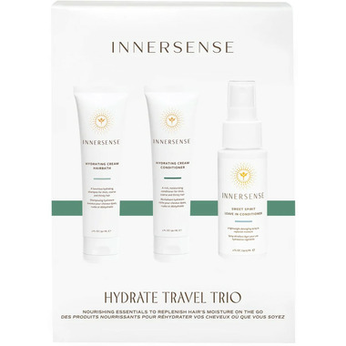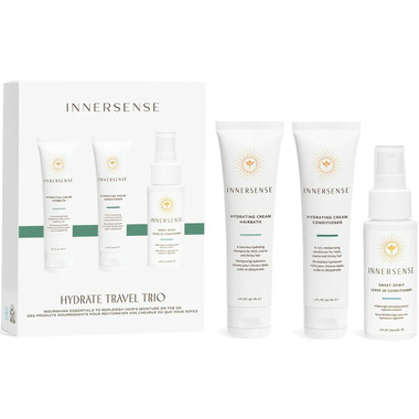 A hydrating travel trio for coarse, thick or thirsty hair. Maintain healthy, hydrated hair on the go with this travel set curated for thick, coarse or dry hair. Hydrating Cream Hairbath is a sulfate free shampoo that cleanses while restoring moisture, bounce and shine with its creamy formula. Replenish thirsty strands with Hydrating Cream Conditioner, a silicone free, indulgently rich formula that repairs and moisturizes with naturally nourishing emollients. Sweet Spirit Leave In Conditioner makes detangling a breeze and keeps hair soft and hydrated throughout the day.