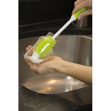 This 2-in1 silicone bottle brush will reach all corners of any bottle. With an integrated tip that will flex to a 90-degree angle, this bottle brush will reach all the nooks and crannies of any baby bottle or water bottle.