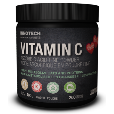 Innotech Nutrition's pure Vitamin C is a fine powder consisting of pure ascorbic acid. It is designed to be easily added to smoothies, soups, or any drink mix.