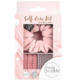 The self care gift set for all hair types includes 1 original sprunchie, 3 pink and 3 clear hair rings.