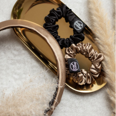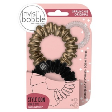 The true golden slim sprunchies are for all hair types and include 1 black and 1 gold sprunchie.