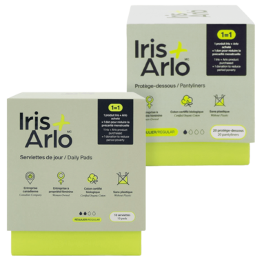 Discover Iris + Arlo's daily pads with wings, made exclusively from 100% organic cotton, without any chemical substances. Each box contains 10 pads.