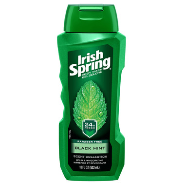 Irish Spring Black Mint Body Wash with a bold and invigorating scent goes boldly where no body wash has gone before. It's the crisp, clean freshness of Irish Spring you know and love with a bold new twist. Odor neutralizing technology will keep you fresh for 24 hours. Go ahead, refresh boldly